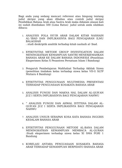Artikel kali ini berisi contoh judul skripsi dan proposal untuk mahasiswa fkip bahasa inggris. Untuk menggunakannya teman teman sebaiknya mencari . Dapatkan 77 contoh judul skripsi pendidikan bahasa inggris reading, writing, speaking, vocabulary terbaru dan terlengkap hanya di sbi. Tapi jika ingin mencari judul skripsi saja yang berkualitas bisa mempelajari judul skripsi dibawah ini. Daftar judul skripsi jurusan pendidikan bahasa inggris · kami hanya menyediakan contoh skripsi jurusan pendidikan bahasa inggris dengan nilai baik yang ada pada .