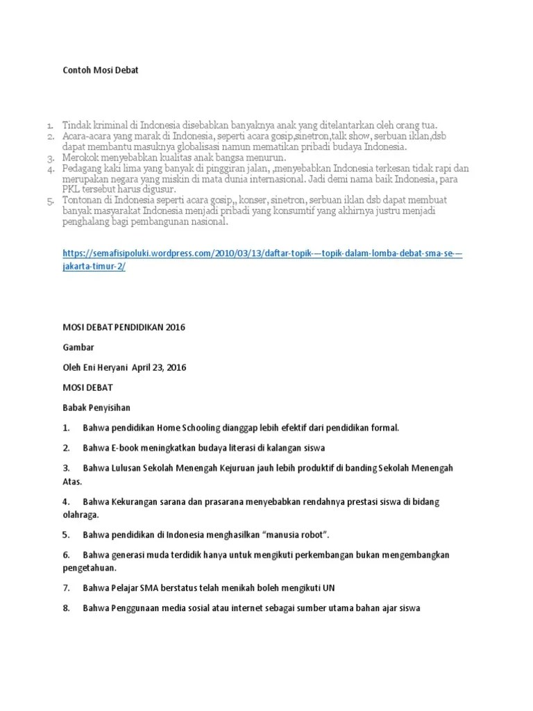 Contoh Mosi Debat Tentang Pendidikan / 1 / Oleh dosen pendidikan 2diposting pada 13/08/2021.